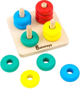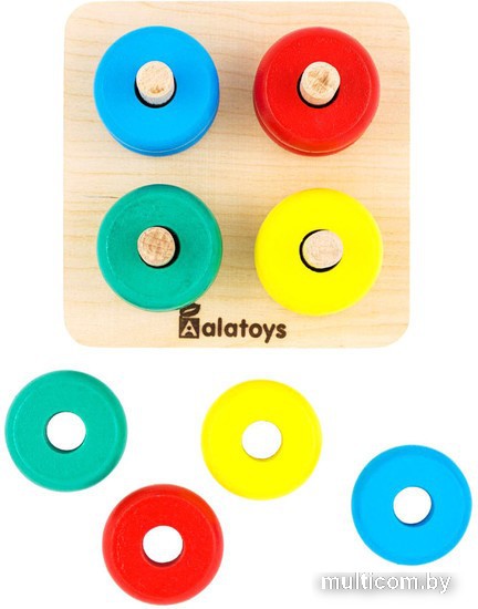 | Информация | Пирамидка «Счеты» - развивающая игрушка от Алатойс, представляющая собой деревянную основу с 4 шкантами и 12 колец для нанизывания. Основная задача: нанизать нужное кольца на штыри в соответствии с оттенками основного цвета. Благодаря этой игрушке ребенок сможет выучить цвета и развить мелкую моторику |