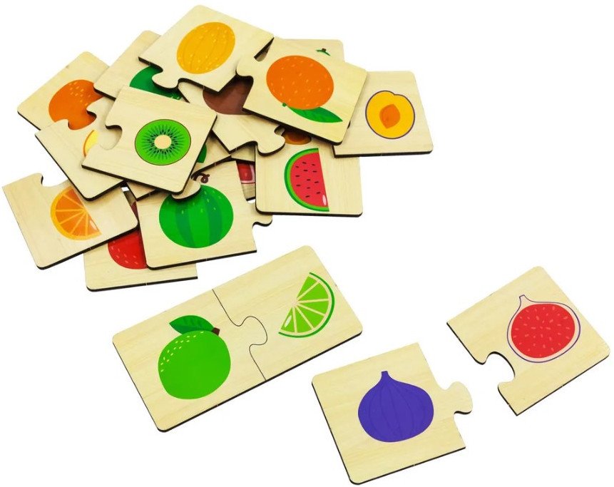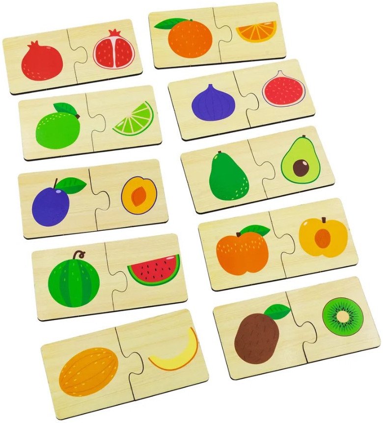 | Информация | - Развивающая и обучающая игра-ассоциации в виде парных пазлов «Фрукты» поможет ребенку в развитии у него абстрактного и логического мышления, научит классифицировать предметы, выделять общие признаки, а также разовьет мелкую моторику и расширит словарный запас малыша. - Игра «Фрукты» представляет собой набор из 10 деревянных карточек, поделенных на 2 части. Задача для ребенка — собрать пазл, подобрав половинки по их общим признакам. - Когда малыш только начинает играть в ассоциации, родители могут помочь ему: задать наводящие вопросы, подсказать и, конечно, похвалить за проявленную догадливость. - Игры-ассоциации помогут детям узнать новое об окружающем мире, расширить кругозор, потренировать логику и наблюдательность. |