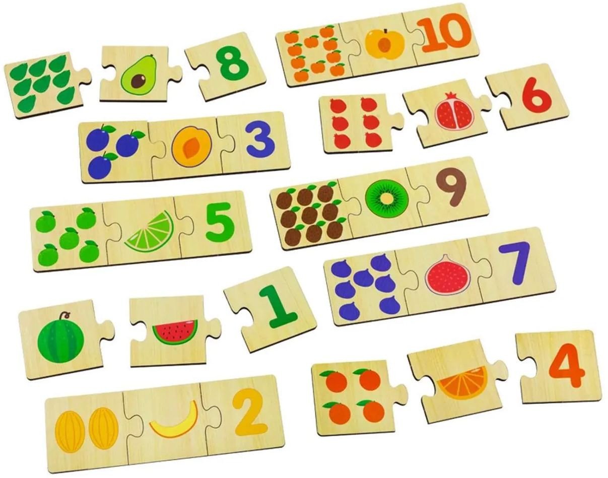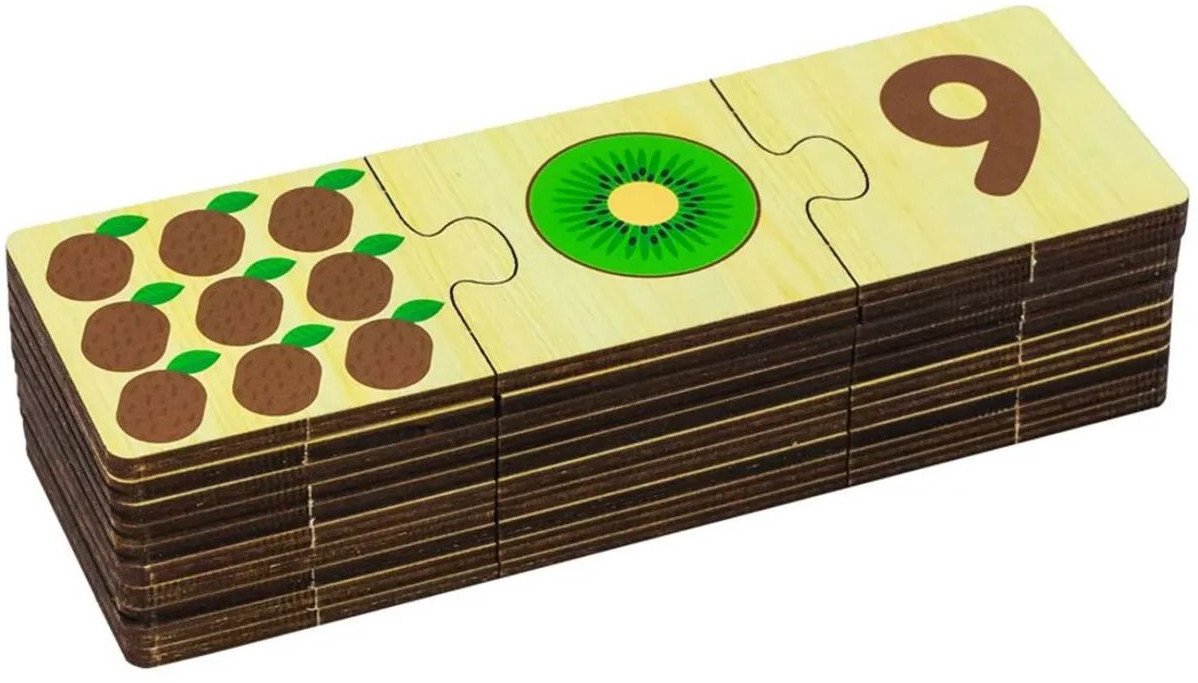| Информация | - Развивающая игра Alatoys ПЗЛ32 представляет собой цифры и «разрез». - В комплект входят 30 деталей, которые необходимо соотносить между собой. - Нужно соотнести 3 разных дощечки: количество фруктов на дощечке с фруктом в разрезе и цифрой. В случае успешного выполнения, назовите фрукт, цвет и цифру вслух. - Соединить правильно. - Логическое сопоставление деревянных деталей поможет малышам развить навыки: логика, память, речь, моторику рук, воображение, счет, цветовое восприятие. |