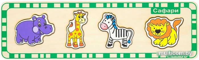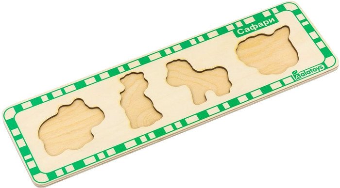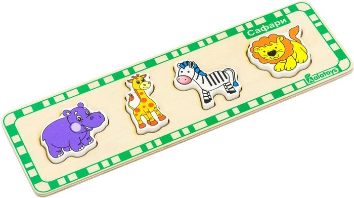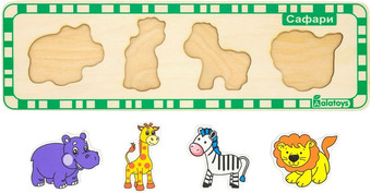 | Информация | Малыш с детства учится сопоставлять фигурку контуру в основании игрушки. Также ребёнок знакомится с дикими животными, которых можно встретить на сафари. Развивает внимание, логику, усидчивость. |