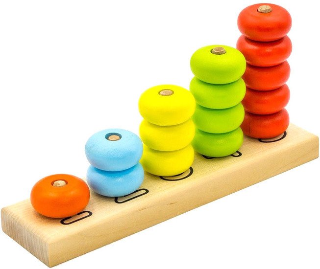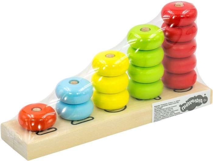 | Информация | Пирамидка Счеты увлекательная и познавательная игрушка для детей. На деревянном основании стержни обозначены цифрами от 1 до 5 с соответственным числом нанизываемых деталей Функционал: - развитие навыков счета. (Сколько штырей? Сколько колец? Прибавили - вычли) - развитие мелкой моторики пальчиков. Процесс захвата и нанизывания; - изучение цвета; - развитие фантазии - на что похоже? (Иголки у ежика, нанизывание яблок); - с помощью такого количества колец можно изучить тему "больше" - "меньше" (добавь или убери, чтобы стало поровну). Пирамидка состоит из пяти штырей, на которые нужно нанизывать детали-шайбы разного цвета. Игрушка идеально подходит для ДОУ в качестве методического пособия, поскольку подразумевает собой изучение базовых навыков для определенного возраста. Предложите ребенку собрать пирамидку одного цвета, разных цветов. Проговорите названия цветов – желтый, красный, голубой – именно такого цвета шайбы пирамидки. Захват детали и мастерство нанизывания на штырь – это активная работа мозга и мелкой моторики руку. Перед малышом стоит задача – так взять деталь, чтобы она удержалась в руке. Затем ее нужно развернуть определенным образом для того, чтобы надеть деталь на штырь. Игрушка полностью соответствует методике Монтессори, поскольку ребенок может самостоятельно играть, придумывая варианты цветовой гаммы готовых пирамидок. Для детей постарше возможно работа со счетом и составом числа. Пять красных шайбочек. Одну убрали, - сколько теперь осталось? Резюмируйте: пять – это четыре плюс один. |