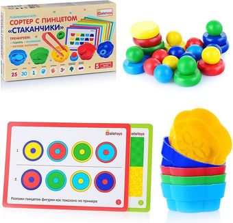 | Информация | С помощью этого сортера малыш развивает память, внимание, мелкую моторику. В аккуратной цветной коробке содержатся пинцет, деревянная подставка в форме цветка и деревянные шарики и палочки. Малыш сможет вместе с мамой перемешать все детальки в мешочке, который идет в комплекте, а затем рассортировать их по цветам в цветке. С помощью пинцета малыш тренирует мелкую моторику и учится пользоваться простыми инструментами как в правой, так и в левой руке. |