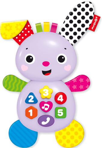 | Информация | Милый зайка станет для малыша не просто любимой игрушкой, а хорошим другом! Нажимая на кнопочки, ребенок сможет послушать 30 звуков, фразочек, песенок («Как чудесно жить на свете», «Что такое праздник?», «Как хорошо все цифры знать», «Это что за чудеса?», «Быстро выучим цвета», «Пляшут весело детишки»), выучить цифры, формы и цвета, поиграть в телефончик. Огоньки на кнопочках мигают под музыку и создают ощущение праздника. А еще у щенка мягкие лапки и шуршащие ушки, которые так приятно трогать! Игрушка отлично подходит для развития слухового восприятия, музыкальных способностей и тактильных ощущений. Играй, учись и веселись! |