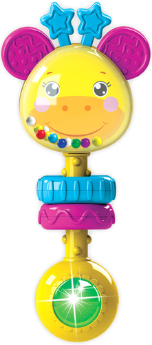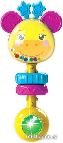| Информация | Музыкальная погремушка для малыша в виде симпатичного жирафика с мягкими ушками и рожками! Ребенку нужно просто потрясти погремушку – и жирафик споет песенку. Всего в игрушке 15 песенок, мелодий и звуков («Это кто у нас маленький такой?», «Как хорошо нам с мамочкой», «Чижик-пыжик», «Танец зверят» и др.), а также множество активных элементов. Яркий огонек привлекает внимание, цветные шарики весело звенят! А рельефные силиконовые ушки и пластмассовые колечки развивают тактильные ощущения – ребенку будет приятно потрогать их пальчиками. |