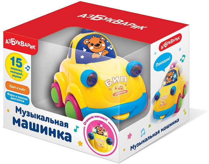 | Информация | ? Музыкальная машинка Азбукварик - яркая игрушка для малышей, которая катается под музыку! ? Слушай веселую песенку, забавные мелодии и звуки транспорта, когда включаешь эту машинку. ? Подвижные детали (фары и др.) и разноцветные мигающие огоньки делают игру с машинкой еще более увлекательной. ?? Бонус: QR-код для скачивания интерактивного приложения «Караоке с мультиками» для смартфона или планшета! ? Отличный выбор для маленьких непосед! ?? Обратите внимание: Батарейки в комплект не входят. |