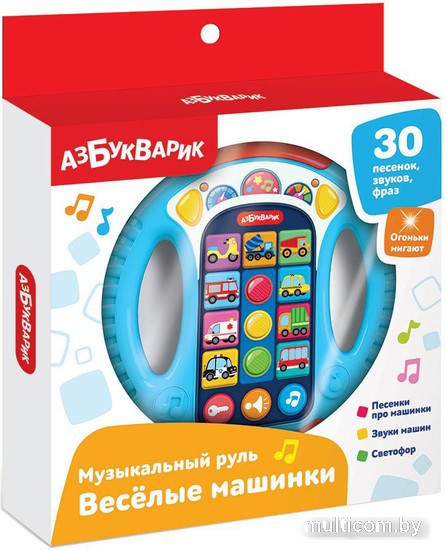 | Информация | ? Самый современный музыкальный руль для малышей — руль-смартфончик! ? Он похож на крутую панель управления! ? Нажимая на музыкальные кнопочки, ребенок послушает веселые песенки про машинки, звуки транспорта, изучит сигналы светофора. ? Во время звучания на руле мигают огоньки! ? Крутить руль под музыку — это весело! ? Всего в игрушке — 30 песенок, звуков, фраз. ? «Музыкальный руль Веселые машинки» пригодится не только для развлечения, но и для развития ребенка. ? Игры с рулем развивают двигательную активность, фантазию и способствуют запоминанию основных правил безопасности. |