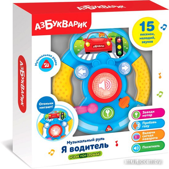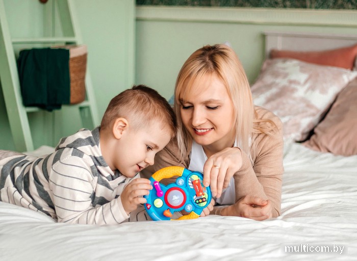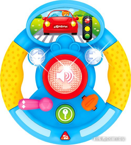 | Информация | Яркий музыкальный руль для маленьких водителей! Подвижные элементы, настоящие звуки машины, яркие огоньки поворотников, большая светящаяся кнопка сигнала, радио с любимыми песенками и мелодиями – всё это сделает игру интересной и увлекательной! |