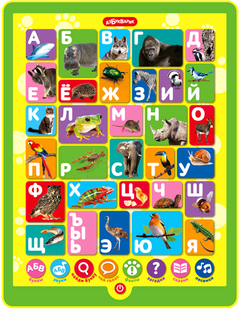 | Информация | С новым планшетиком «Зооазбука» можно и учиться, и веселиться! Ребенку понравится изучать буквы со зверятами: Б – Бегемот, Е – енот, З – зебра, всё просто! В планшетике 8 игровых режимов: «Буквы», «Звуки», «Найди букву», «Чей голос», «Факты», «Загадки», «Стихи», «Сказки». Малыш узнает много интересного о животных, а 100 вопросов и загадок помогут ему проверить знания. После занятий ребенок может отдохнуть: послушать веселые песенки («Учим буквы и поём», «Как чудесно жить на свете», «Где-то в жаркой Африке», «Жил да был весёлый ёжик», «Зарядка», «Весёлые противоположности», «Джунгли») и 5 сказок («Солнышко», «Упрямый слонёнок», «Лягушка-путешественница», «Заяц и черепаха», «Как бегемотик стал чистюлей»). Все картинки звучат! |