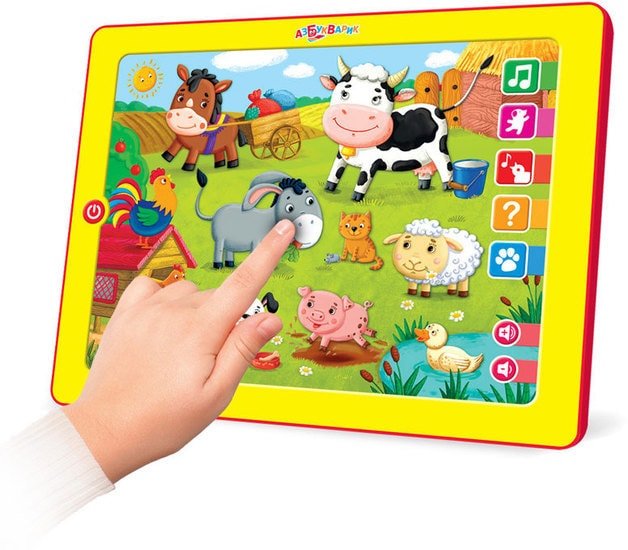 | Информация | Красочный планшетик поможет детишкам в игровой форме познакомиться с животными фермы, узнать, как они выглядят и что говорят!А ещё малыша ждут весёлые песенки и мелодии: «Танец маленьких утят», «Два весёлых гуся», «Ладушки», «Калинка» и «Собачий вальс», а также увлекательные игры: «Чей голос?» и «Загадки». |