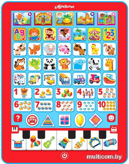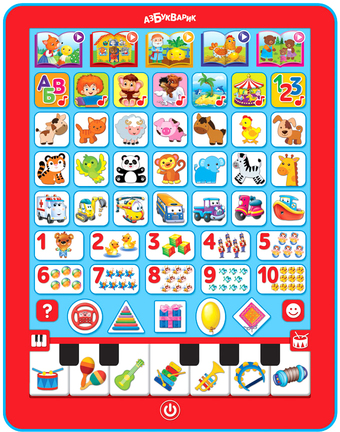 | Информация | Детский музыкальный планшет «Первые знания малыша» станет лучшим подарком для мальчиков и девочек. Ведь в нем есть все необходимое для получения новых знаний. Играя с обучающим планшетиком ребёнок выучит счёт, животных, машинки, познакомится с музыкальными инструментами, а также с понятиями форма и цвет. Планшет содержит 20 познавательных песенок и стихов, которые сделают обучение увлекательным, а 35 вопросов и загадок помогут проверить знания! А еще ребенок сможет сам сыграть на волшебном пианино 5 популярных мелодий, что очень полезно для развития музыкального слуха. Для веселых переменок в планшете собраны детские хиты («Антошка», «Песенка Мамонтёнка», «Чунга-чанга» и другие) и 5 народных сказок: «Колобок», «Теремок», «Репка», «Курочка Ряба», «Три медведя» |