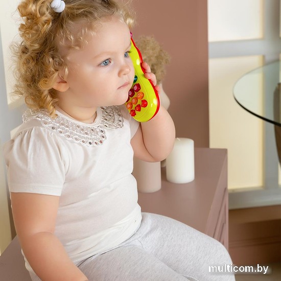 | Информация | ? Большой телефончик для малышей с музыкальными кнопочками! ? Нажимая на кнопки, ребенок познакомится с цифрами, послушает 6 песенок про зверят, песенку про телефон, мелодию с голосами зверят, оригинальные рингтоны и другие звуки! ? На кнопочках мигают огоньки — это дарит ощущение праздника! ? Подвижная деталь — каруселька — делает телефон еще более крутым и интересным. ? Музыкальный телефончик «Каруселька» поможет в развитии музыкальных способностей (песенки можно подпевать), мелкой моторики и тактильных ощущений (благодаря подвижным элементам и выпуклым кнопочкам разной формы), а также воображения — ведь ребенок сможет как бы «звонить» зверятам и разговаривать с ними! |