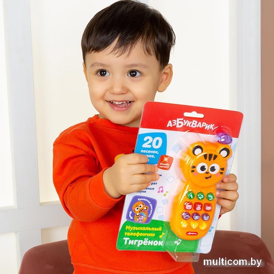 | Информация | ? Большой телефончик для малышей в форме забавного тигренка с музыкальными кнопочками! ? Нажимая на кнопки, ребенок познакомится с цифрами, послушает 6 песенок про зверят, песенку про телефон, оригинальные рингтоны и другие звуки! ? На кнопочках мигают огоньки, создавая ощущение праздника! ? Подвижная крышечка делает телефон еще более крутым и интересным. ? Музыкальный телефончик «Тигренок» поможет в развитии музыкальных способностей, мелкой моторики и тактильных ощущений, а также воображения. |