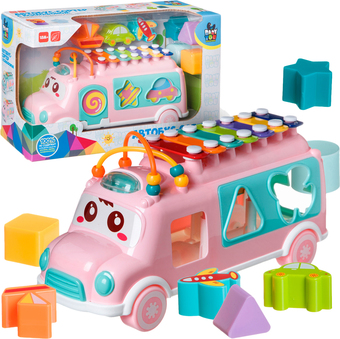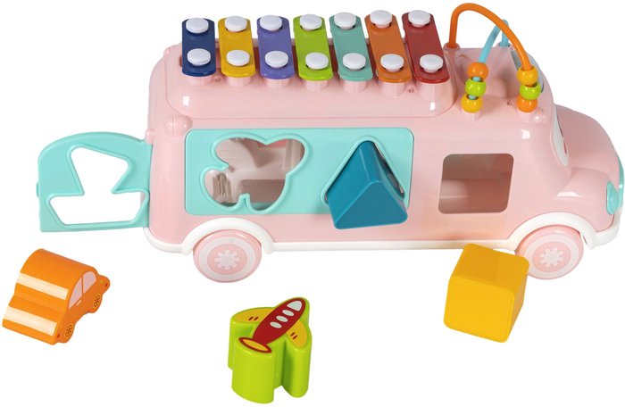 | Информация | Отлично подойдет для игры для малышам от 18 месяцев. Дверь автобуса открывается, имеет функции сортера и небольшие детали, что отлично подходит для развития мелкой моторики. Также автобус можно возить за веревочку. Таким образом, одна игрушка объединяет в себе несколько игровых функций: каталка, сортер, ксилофон. Игрушка поспособствует формированию тактильных ощущений, восприятия звуков, цветов, форм и поможет в развитии мелкой моторики и воображения Вашего малыша. |
