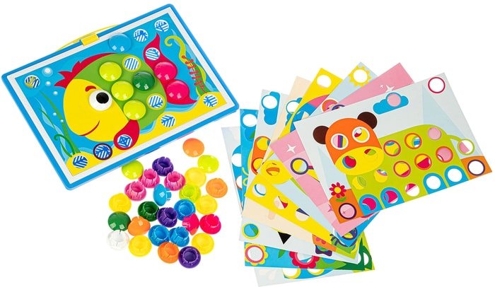 | Информация | Вставляя фишки-гвоздики в ячейки нужного цвета на игровом картонном поле, ребенок сможет собрать красочную объемную картинку. Детали мозаики крупные и изготовлены из безопасных и качественных материалов. Под игровым полем находится пластиковая основа-чемоданчик, в которой удобно хранить детали мозаики. Также, благодаря специальной ручке, игровую панель можно использовать, как чемоданчик для переноски, что позволит брать мозаику с собой в гости или путешествие. |