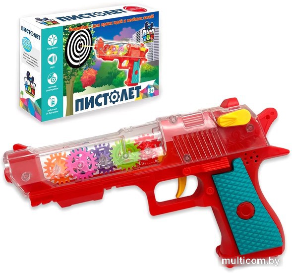 | Информация | Разноцветные шестерёнки весело крутятся в прозрачном корпусе пистолета! Прозрачный корпус позволяет ребёнку наблюдать, как работает механизм, как стыкуются между собой и вращаются яркие детали игрушки. Музыкальный ПИСТОЛЕТ С ШЕСТЕРЁНКАМИ от Bondibon способствует развитию интеллектуальных способностей малыша, развивает его любознательность, помогает мелкой моторике, тренирует слуховое и зрительное восприятие. Звуковые и световые эффекты приведут малышей в восторг. Игрушка светится, играет мелодии, внутри нее двигаются шестеренки, с ней интересно играть в темноте, а также рассматривать работу механизмов внутри. Ударопрочный корпус игрушки непременно порадует родителей. |