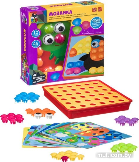 | Информация | Благодаря крупным деталям яркая разноцветная мозаика легко собирается и подойдет малышам от 3-х лет. Вставляя фишки-гвоздики в ячейки нужного цвета на игровом поле, ребенок соберет красочную объемную картинку. Под игровым полем находится пластиковая основа, в которой удобно хранить детали мозаики. Большое разнообразие картинок-шаблонов позволит надолго сохранить интерес ребенка к мозаике. Прекрасная игрушка для развития творческого, пространственного и логического мышлений, памяти, усидчивости и внимания. |