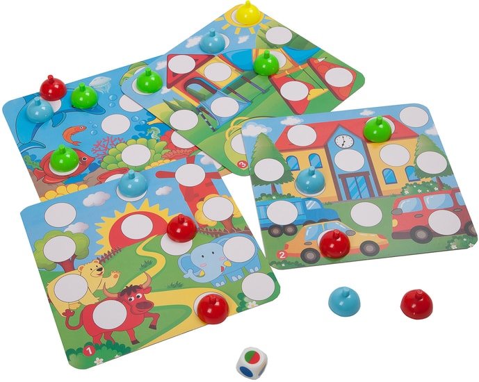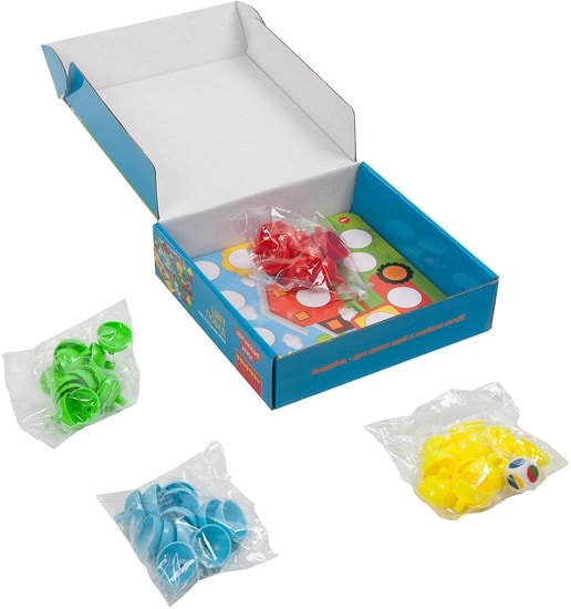 | Комплектация | игровое поле- 4шт, цветные фишки- 48шт, игральная кость -1 шт |