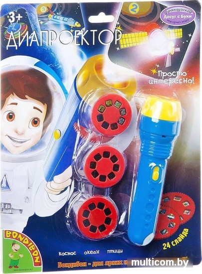 | Информация | Познакомьте ребёнка с разнообразным окружающим миром! Выберите один из 6 комплектных дисков, вставьте его в фонарик, включите и погрузитесь в атмосферу диафильма. |