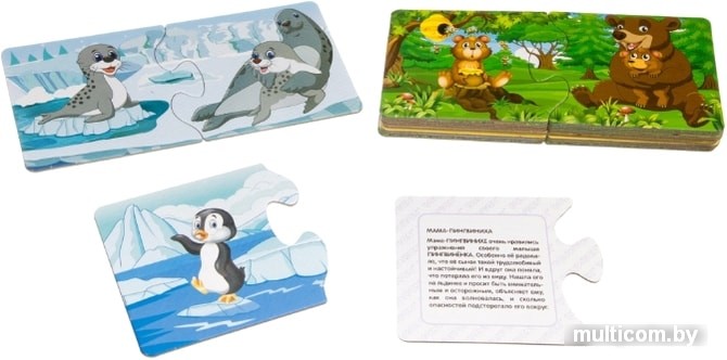 | Информация | На 12 пазлах изображены малыши животных, на других 12 пазлах - малыши вместе с мамами.На обороте каждого пазла прописана история, которая произошла с каждым из персонажей на картинке.Цель игры - найти парные картинки и правильно соединить их. А именно, найти изображение малыша и соединить его с изображением малыша и его мамы.Игра знакомит с миром животных, показывает насколько важна роль мамы.Мама кормит малыша, заботится о нём и учит его. Для каждой мамы её малыш самый лучший, самый красивый, самый любимый!Малыши, как все малыши на свете, любят шалить, баловаться, бегать и прыгать. А ещё они иногда убегают от своих мам, а мамы очень волнуются! Помогите мамам и детёнышам найти друг друга! |