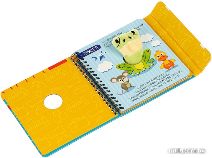 | Информация | Интерактивная книжка с пальчиковой игрушкой и яркими иллюстрациями различных средств передвижения внутри. Неутомимый лягушонок - путешественник по имени Квак и его друзья расскажут о видах наземного, водного, воздушного транспорта, а также о своем опыте покорения Космоса! В книге есть вопросы и задания, тренирующие внимание, память и логическое мышление. |