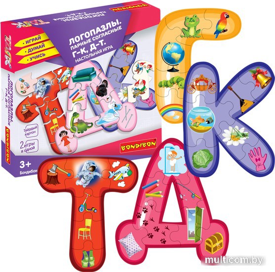 | Информация | Как научить ребёнка выговаривать сложные буквы? Работа над развитием речи требует терпения. Добиться повторения ребенком слов и удержать внимание на карточках бывает очень непросто. На помощь приходит игра «Логомозаика. Парные согласные Г-К, Д-Т" от Bondibon! Ребенок будет с нетерпением ждать занятий. И нужные звуки появятся в его лексиконе достаточно быстро! С Логомозаикой Вы научитесь правильно произносить согласные звуки и узнаете, в каких случаях они твердые, в каких - мягкие. Из множества красочных фрагментов вам предстоит сложить буквы: Г, К, Т и Д. На каждой из них изображены различные предметы. В названии этих предметов присутствует та буква, на которой они нарисованы — отыщите её, называя предметы вслух. Теперь, когда каждый из элементов занял своё место, переверните получившиеся буквы и начните вторую игру. Считывайте предметы, правильно согласовывая числительные и существительные. |
