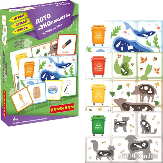 | Информация | Хотите правильного отношения ребенка к окружающей его природе? Тогда подарите ему настольную игру Лото "ЭКОпланета" 2 в 1 Bondibon. Игра серии Играй Думай Учись учит одному из важных принципов экологического образа жизни – сортировке мусорных отходов. Помимо воспитательных моментов игра развивает логическое мышление, концентрацию внимания и память. С помощью рулетки Вы распределяете между игроками большие карточки и заполняете свой мусорный бак отходами – маленькими карточками с мусором. Побеждает тот, кто первый закроет свою карточку. Концепция экологического образа жизни наиболее эффективно прививается в детстве – в игровой форме будет закладываться представление о бережном отношении к природе и разумном подходе к потреблению природных ресурсов. |