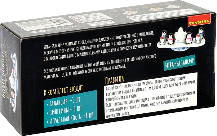 | Комплектация | балансир, 6 деревянных пингвинов, игральная кость |