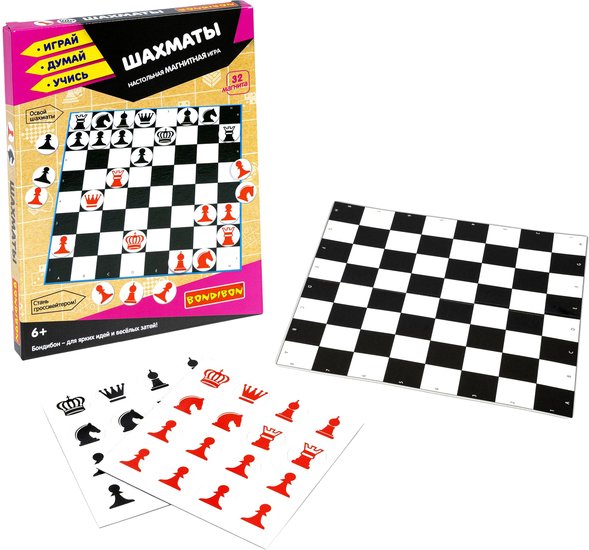 | Информация | Магнитная игра «Шахматы» Bondibon – это знаменитая классическая игра в новом исполнении. Играй Думай Учись – это серия игр, которые были разработаны специалистами в области психологии и педагогики с целью развития когнитивных навыков у детей. Игра в шахматы стимулирует тренировку логики, памяти и концентрации внимания, а компактный размер и магнитные детали позволяют брать игру с собой куда бы Вы не направлялись. |