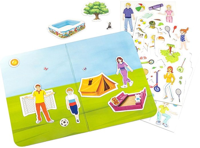 | Информация | Магнитный театр Лето - это многослойная магнитная игра, позволяющая создавать многочисленные сюжеты и рассказы на тему летних каникул и отдыха на природе. Используйте примеры в инструкции и научитесь выстраивать сюжетную линию своего рассказа. Игра поможет развить у ребёнка воображение, память, навыки общения, мышления, моторику, грамотность, пространственную ориентацию. Играть в эту игру можно как с другом, так и одному. |