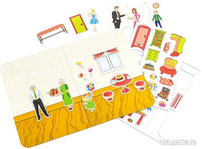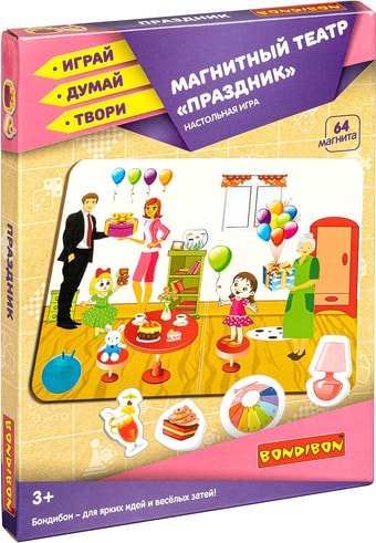 | Информация | Магнитный театр Праздник - это многослойная магнитная игра, позволяющая создавать многочисленные сюжеты и рассказы на тему организации веселого домашнего праздника. Используйте примеры в инструкции и научитесь выстраивать сюжетную линию своего рассказа. Игра поможет развить у ребёнка воображение, память, навыки общения, мышления, моторику, грамотность, пространственную ориентацию. Играть в эту игру можно как с другом, так и одному. |
