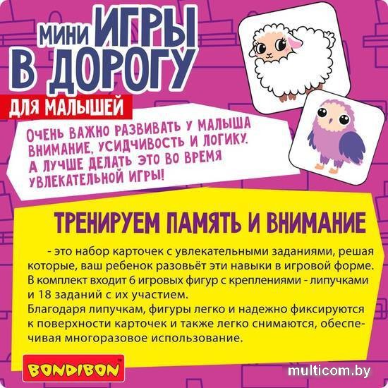 | Информация | ТРЕНИРУЕМ ВНИМАНИЕ И ПАМЯТЬ — это увлекательные задания, решая которые, Ваш ребенок разовьёт эти важные навыки в игровой форме. Яркие картинки способствуют визуальному восприятию. Фигуры на липучках помогают развитию мелкой моторики. Для лучшего результата рассмотрите все предметы на первых карточках (работает визуальная память), проговорите их названия (слуховое восприятие), разложите их по группам по общим признакам (логическое мышление). Подобный интерес к деталям поможет быстрее справиться с последующими заданиями и качественно разовьет внимание и память вашего ребенка. В комплект входит 6 игровых фигур с креплениями - липучками и 18 заданий с их участием. Благодаря липучкам, фигуры легко и надежно фиксируются к поверхности карточек и также легко снимаются, обеспечивая многоразовое использование. Мини игры в компактной книжке с магнитной застежкой. Удобно в дороге! |