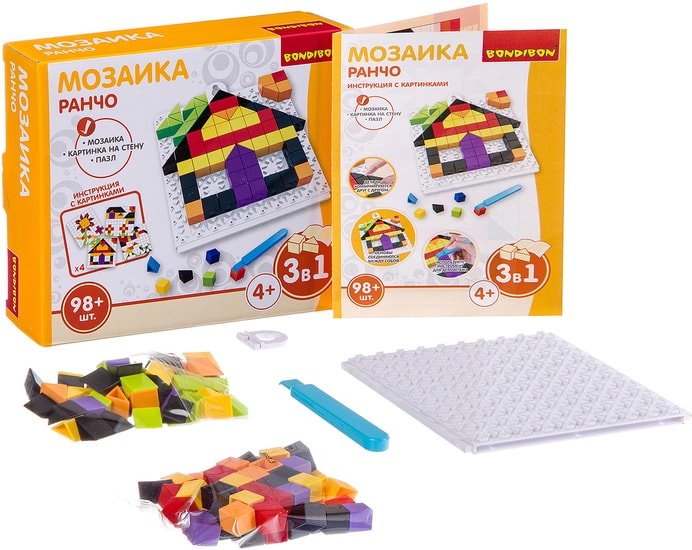 | Комплектация | деталь мозаики - 98 шт., основа – 1 шт., крючок – 1 шт., палочка – 1 шт., инструкция – 1шт. |
