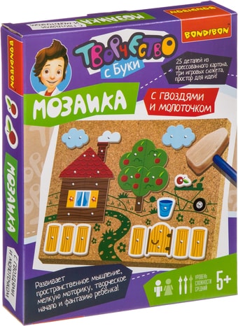 | Информация | Увлекательная игра предполагает создание картины из деталей, прикрепляемых к основе с помощью гвоздиков. Особых усилий не требуется, детали содержат отверстия, остается лишь вставить гвоздики и прибить молотком! Также легко разобрать созданные картинки. Игра отлично тренирует мелкую моторику рук и глазомер ребенка, воображение и фантазию. Гвоздики в игре достаточно острые, поэтому, если Вы предложите игру маленькому ребенку, нужно, чтобы он постоянно находился под Вашим контролем. |