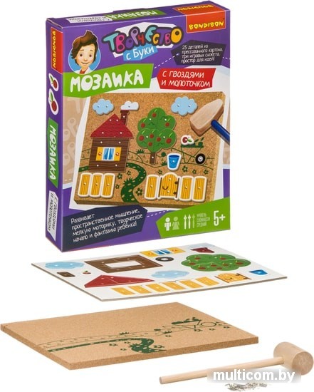 | Комплектация | пробковая основа, деревянный молоток, гвоздики, детали из прессованного картона, схема - инструкция. |