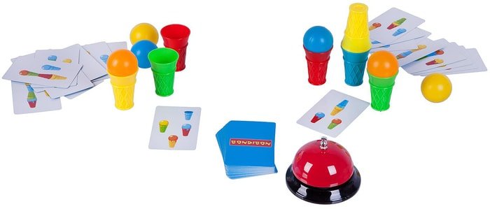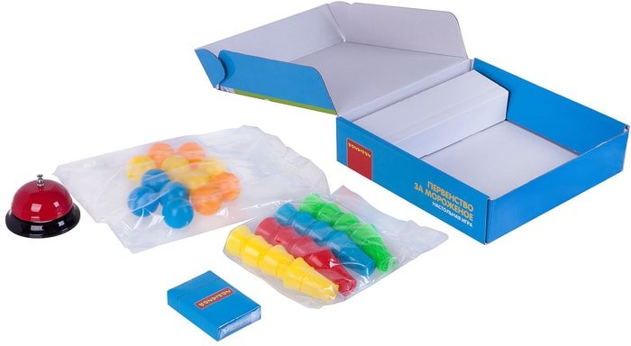 | Информация | Первенство за мороженое - Игра на ловкость рук и остроту глаза, а также яркое и полезное развлечение для детей и всей семьи! Собери мороженое, как показано на карточке с заданием. Но будь внимателен - шарики мороженого нельзя трогать руками! Цвета стаканчиков и шариков нужно разместить в правильном порядке, как показано на карте с заданием, раньше соперников нажать на звонок. Если всё верно - игрок забирает карту себе .Игра продолжается до последней карты в колоде. В комплект входит карта-задание 54 шт., стаканчик 16 шт., шарик 16 шт., настольный звонок. |