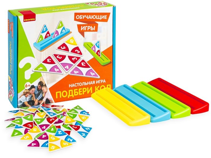 | Информация | Как увлекательно и весело развивать логику у своего ребенка? Лучшим союзником станет настольная обучающая игра "ПОДБЕРИ КОД" серии Обучающие игры от Bondibon! Игра не просто позволяет интересно провести время, но и активизирует логику, развивает усидчивость и внимательность, а также помогает сосредоточиться. Все элементы в игре выполнены в ярких цветах и направлены на комплексное развитие логико-математического мышления и внимания. Задача игроков - подбирать сочетания к лежащей на столе фишке/фишкам таким образом, чтобы совпадали оба цвета или цифры по соприкасающимся сторонам. Если подходящей карточки нет, нужно взять дополнительную из банка. Игра заканчивается по принципу домино, когда в банке нет фишек. Побеждает игрок с наименьшим количеством фишек на руках. |