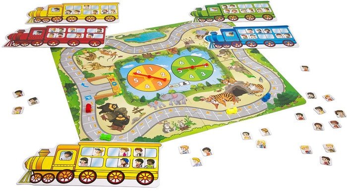 | Комплектация | игровое поле-пазл с двумя барабанами, четыре туристических паровозика, четыре карточки с пассажирами, четыре фишки паровозика. |
