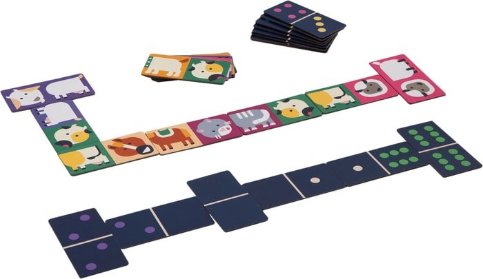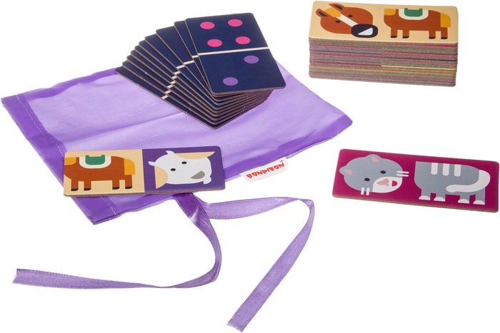 | Информация | Перед вами необычное домино: чтобы не только весело и интересно играть, но и многому научиться. Рекомендации для родителей подробно прописаны в инструкции. Вы можете выбрать любую игру по вашему желанию. Весёлой и интересной игры! Игра 1 Рожки да ножки. Цель игры - подбирать по картинкам нужные карточки таким образом, чтобы из двух половинок карточек получалось целое изображение одного животного. Игрок, который из всех своих карточек собрал животных, становится победителем. В том случае, если остались неиспользованные карточки, выигрывает игрок, у которого их наименьшее количество. Игра 2 Классическое домино. Цель игры - первым выложить все свои карточки, присоединяя их в правильном порядке. Каждый игрок кладёт карточку таким образом, чтобы число точек с одного конца карточки соответствовало числу точек присоединяемой карточки. Если в процессе игры невозможно больше положить карточку, то выигрывает тот, у кого при подсчёте окажется наименьшее количество точек на оставшихся карточках. |