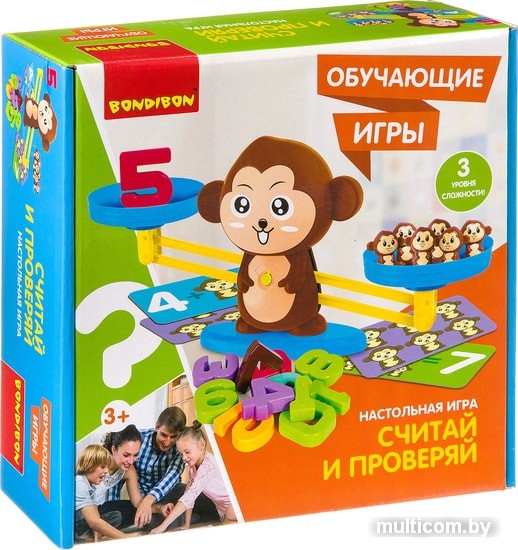 | Комплектация | двусторонняя карта-задание - 30 шт., обезьянка - 19 шт., объемная цифра - 10 шт., чаша весов - 2 шт., основа весов - 1 шт., корпус весов. |
