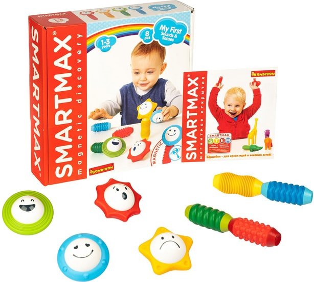 | Информация | Конструктор SmartMax Мой первый набор погремушек от Bondibon состоит из 8 крупных магнитных деталей с звуковыми эффектами и сенсорной текстурой, безопасных для детей в возрасте от 12 месяцев до 3 лет. С помощью данного набора ребенок развивает тактильные навыки, изучает цвета и формы, а также открывает для себя магию магнетизма SMARTMAX, ведь одни элементы можно соединить, а другие - отталкиваются! |