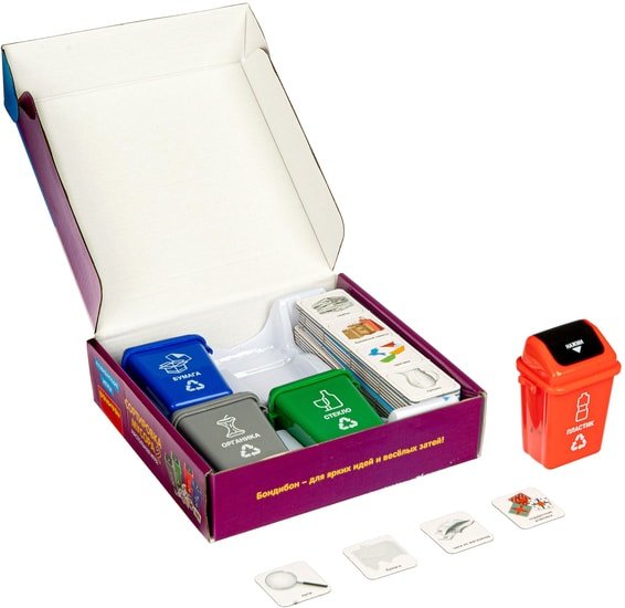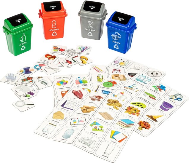 | Информация | Возраст 4. Количество игроков 1-4. Партия игры 10 мин. Игра направлена на способствовать формированию экологической культуры. Познакомит детей с понятием вторичная переработка и сортировка мусора. Даст представление о способах решения некоторых экологических проблем. Поможет развивать умение классифицировать, воспитывать любовь и бережное отношение к природе, ответственность, аккуратность, принципиальность. Способствует социальному развитию и умению работать в команде, а также веселому и полезному времяпровождению. |