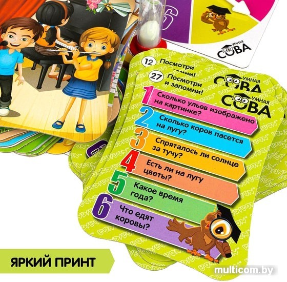 | Информация | Игра-викторина Умная Сова Посмотри и запомни развивает внимательность и память! Викторина предназначена как для самостоятельного времяпровождения, так и для игры в компании! Красочные иллюстрации и каверзные вопросы. Вопросы сформулированы таким образом, что уже при их прочтении у вашего малыша будут закладываться новые знания. Данная игра разработана на базе авторской методики обучения, предполагающей новую форму подачи материала и способствующей усвоению нового для ребёнка материала в игровой форме. Правила игры содержат три уровня сложности и обеспечивают индивидуальный темп, объём и сложность игры в зависимости от возраста и возможностей игроков. Вопросы сформулированы таким образом, что ребёнок усвоит неизвестную для него информацию в игровой форме. Например, при ответе на вопрос Сигнал светофора какого цвета горит для пешеходов? ребенок должен не только вспомнить что изображено на картинке, но и в игровой форме усвоить то, что дорогу нужно переходить на зеленый сигнал светофора. |