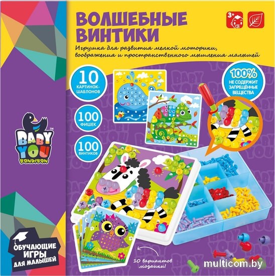 | Комплектация | 8 картинок-шаблонов, 100 фишек, 100 винтиков, пластиковая отвертка |