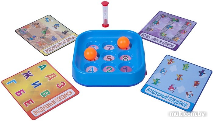 | Информация | Воздушный поединок - отличная игра для развития! Она способствует совершенствованию артикуляционного аппарата, формированию правильно вдыхаемой струи воздуха, которая важна для развития речи. Помогает формированию арифметических навыков, логического и пространственного мышления. Перед началом игры вставьте карточку в специальное отверстие в планшете, поместите шарик на стартовую позицию, переверните песочные часы. Игра началась! У нее есть 2 варианта. Вариант 1 пока не истекло время, отведенное песочными часами, игроку необходимо переместить мячик на игровом поле согласно указанному на поле маршруту. Если мячик сошел с пути, игра начинается заново. Побеждает игрок, прошедший маршрут быстрее всех. Вариант 2 Поместите на поле два шарика. По очереди участники перемещают свой мячик согласно указанному на поле маршруту. Если мячик сошел с пути, игрок начинает заново. Побеждает игрок, прошедший маршрут быстрее всех. |