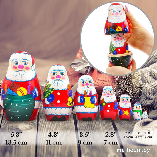 | Информация | ВЕЛИКОЛЕПНЫЙ ДИЗАЙН: Украшение в виде санта-клауса для праздничного рождественского декора ЭКОЛОГИЧЕСКИЕ МАТЕРИАЛЫ И ВЕРНОСТЬ ТРАДИЦИИ РОСПИСИ: натуральное дерево, краски и лак на водной основе УНИКАЛЬНЫЙ ПОДАРОК: оригинальный предмет декора для гостиной, спальни, детской, а также для офиса, салона ИДЕАЛЬНЫЕ РАЗМЕРЫ: высота самой большой матрешки 13.5 см, самой маленькой - 2 см |