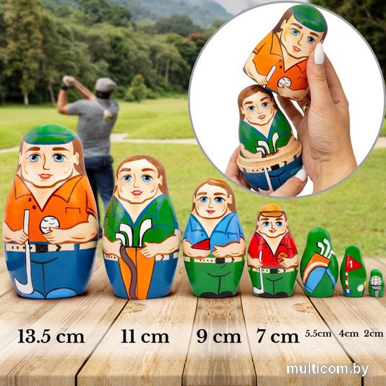 | Информация | Оригинальные матрешки ручной работы представляют собой милую компанию гольфистов с экипировкой для гольфа. |