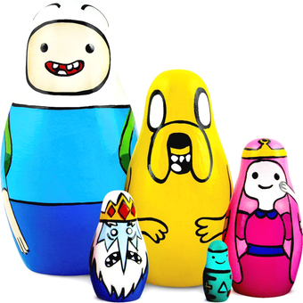 | Информация | Добрые и яркие персонажи «Время приключений» появятся на полке вашего ребенка и сразу станут любимой игрушкой. Традиционная кукла в необычной расцветке — это игрушка сюрприз. Ведь раскрыв одну, малыш тут же обнаружит там следующую. Набор содержит 5 фигурок высотой от 2,2 до 9 см. Проигрывайте знакомые сюжеты из мультфильмов, сочиняйте собственные сценарии или просто складывайте куколок. Старинные игрушки матрёшки не ограничивают вашу фантазию, это и сортеры для малышей, и любимые герои для детей постарше. Игрушки для детей мы изготавливаем из натурального дерева, знакомя будущих владельцев с культурой и ценностями наших предков. Мастер вытачивает и шлифует каждую куколку в 15 этапов, убирая все неровности и шероховатости. |
