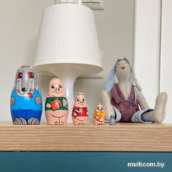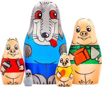 | Информация | ВЕЛИКОЛЕПНЫЙ ДИЗАЙН: Матрешки в виде персонажей сказки "Три поросенка" ЭКОЛОГИЧЕСКИЕ МАТЕРИАЛЫ И ВЕРНОСТЬ ТРАДИЦИИ РОСПИСИ: натуральное дерево, краски и лак на водной основе УНИКАЛЬНЫЙ ПОДАРОК: оригинальный предмет декора для гостиной, спальни, детской, а также для офиса, салона ИДЕАЛЬНЫЕ РАЗМЕРЫ: высота самой большой матрешки 9 см, самой маленькой - 2 см |