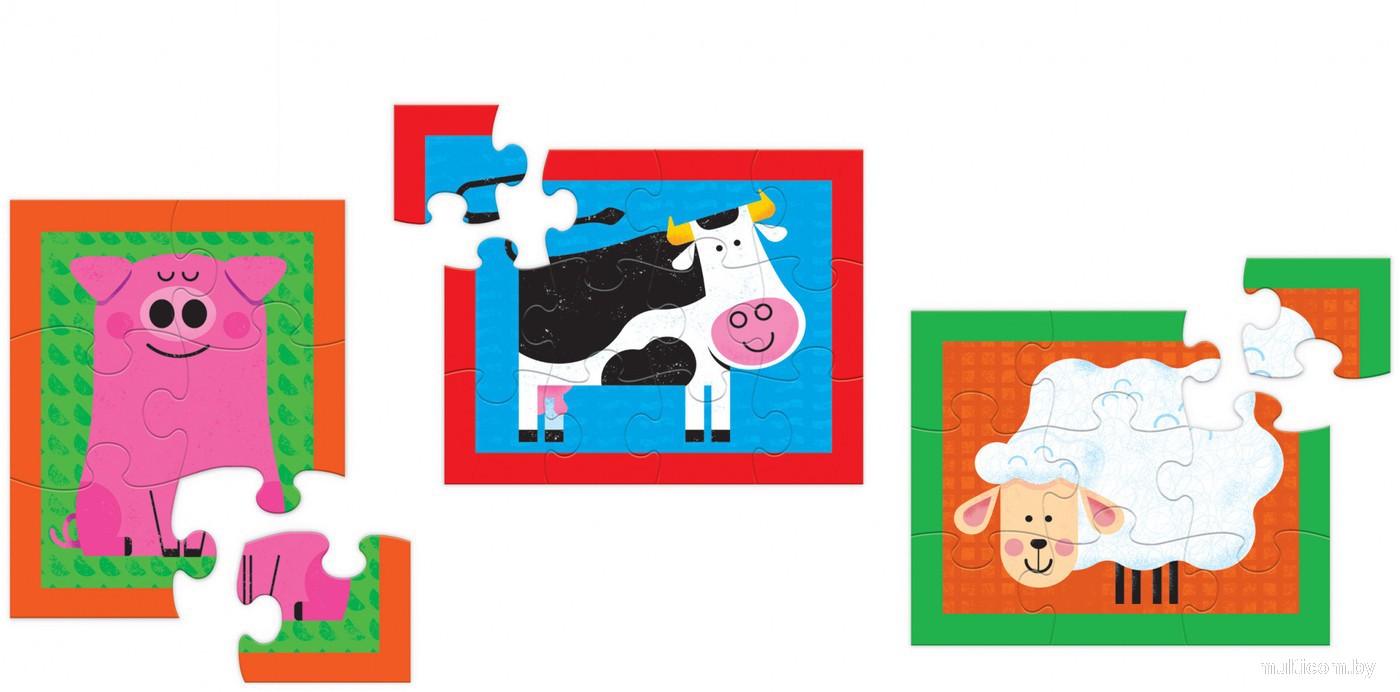| Информация | - Пазл «Ферма» серии My First Puzzles — отличный вариант подарка для маленьких любителей головоломок. В комплекте три пазла различной сложности, с количеством деталей от 6 до 12. Упакован в прочный футляр-чемоданчик с удобной ручкой для переноски. Игра способствует развитию моторики, концентрации и пространственного мышления. Подходит для детей от 3-х лет. |