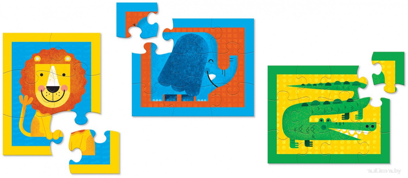| Информация | - Идеальный вариант подарка для маленьких любителей головоломок - пазл «Джунгли» серии My First Puzzles. - Комплектация: три пазла различной степени сложности, количество деталей варьируется от 6 до 12. - Набор упакован в прочный футляр-чемоданчик с удобной ручкой для переноски, благодаря чему пазлы удобно брать с собой в дорогу. - Подходит для детей от 3-х лет. |